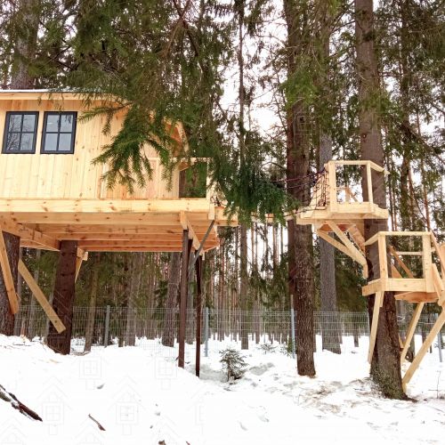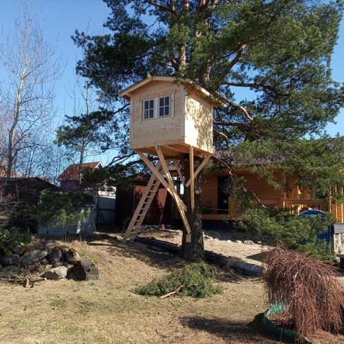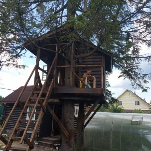- нарушение правил безопасности. Выбор дерева, способного выдержать нагрузку, необходимость дополнительных опор, грамотное крепление, надежность ограждений - решение этих вопросов можно доверить только специалисту. В противном случае можно ждать неприятностей вплоть до травм, а срок службы домика вряд ли будет долгим;