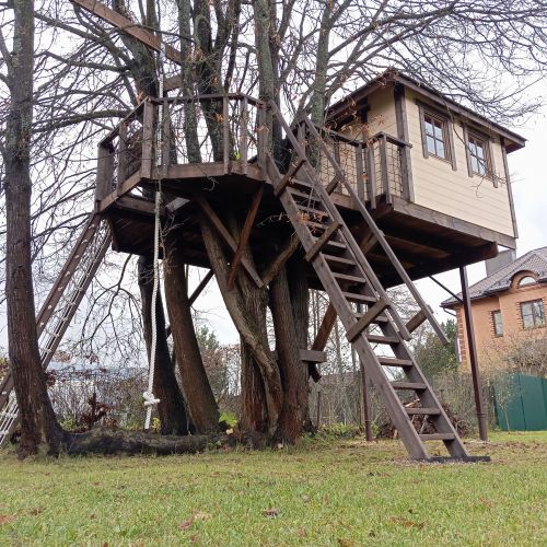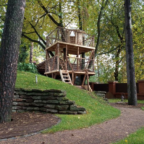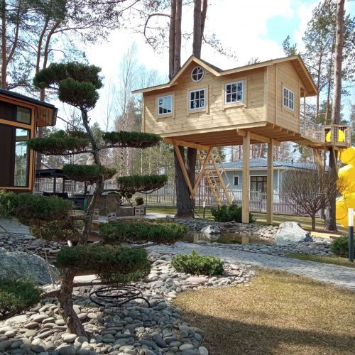 Наверняка вы помните, как в детстве строили шалаши на даче, а в городе находили уютный уголок во дворе, например, беседку, где можно уединиться самому или с друзьями. Сейчас стремление к обособленному личному пространству воплощает в себе домик на дереве для детей. Это территория для игр, дающая толчок детской фантазии; место, где осознаются собственная индивидуальность, неприкосновенность личных границ; зона, куда взрослым вход не то чтобы запрещен, но ограничен. Осознавая это, ребенок учится быть ответственным за это пространство - умение, которое так пригодится во взрослой жизни. Добавьте к этому пребывание на природе, воспитывающее в детях любовь к ней, вместо многочасового сидения с гаджетом, и станет понятно, что детский игровой домик на дереве - лучший подарок вашему ребенку.