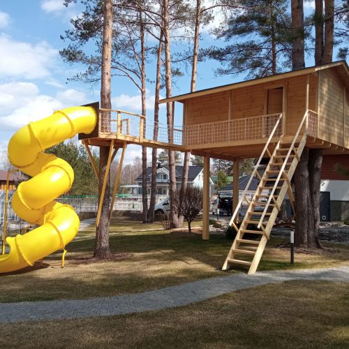 Строительство домика на дереве с винтовой горкой на дереве в Лемболово