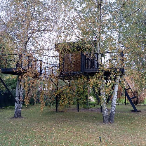 На 6 опорах закреплен домик с круговым проходом через мостики по платформам на березах. Домик утеплен, что позволяет проводить в нем время круглогодично. Домик имеет панорамное окно, а также калитку с замком от непрошенных гостей.
