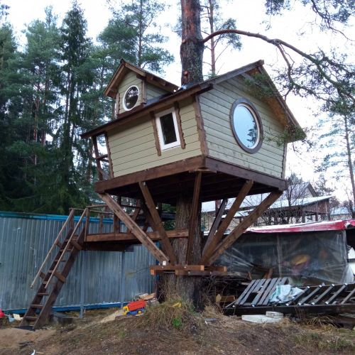 - нарушение правил безопасности. Выбор дерева, способного выдержать нагрузку, необходимость дополнительных опор, грамотное крепление, надежность ограждений - решение этих вопросов можно доверить только специалисту. В противном случае можно ждать неприятностей вплоть до травм, а срок службы домика вряд ли будет долгим;