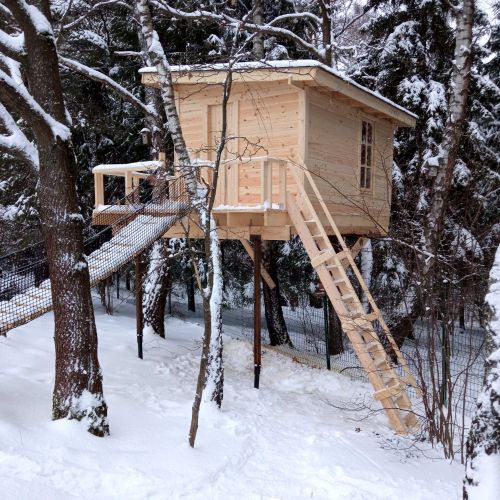 Ответ очевиден. В распоряжении специалистов - знания, опыт и талант, которые позволяют создавать объекты, воплощающие мечты их владельцев, безопасные для людей и природы. Предлагаем построить домик на дереве на заказ силами нашей компании. Посмотрите на каталог проектов - все они различны по стилю, конструкции, размерам, наличию дополнительных деталей - подвесных лестниц, смотровых площадок, качелей и других элементов. Все домики возведены по индивидуальным проектам, учитывающим пожелания клиента и особенности участка строительства, в частности, наличия и расположения подходящих деревьев. Вы можете заказать домик на дереве в Москве и Подмосковье или в другом регионе: среди наших проектов есть постройки под Петербургом и в Европе, в одной из балканских стран. Возможно, вы считаете, что купить это удовольствие для ребенка вам не по карману. Присмотритесь к представленным в каталоге объектам: можно обойтись достаточно скромной суммой. Недорогой летний домик на дереве доставит столько же радости вашей семье, особенно младшим ее членам, сколько оснащенный электричеством, кухней, ванной и прочими атрибутами цивилизации.