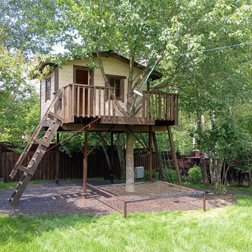 Наверняка вы помните, как в детстве строили шалаши на даче, а в городе находили уютный уголок во дворе, например, беседку, где можно уединиться самому или с друзьями. Сейчас стремление к обособленному личному пространству воплощает в себе домик на дереве для детей. Это территория для игр, дающая толчок детской фантазии; место, где осознаются собственная индивидуальность, неприкосновенность личных границ; зона, куда взрослым вход не то чтобы запрещен, но ограничен. Осознавая это, ребенок учится быть ответственным за это пространство - умение, которое так пригодится во взрослой жизни. Добавьте к этому пребывание на природе, воспитывающее в детях любовь к ней, вместо многочасового сидения с гаджетом, и станет понятно, что детский игровой домик на дереве - лучший подарок вашему ребенку.
